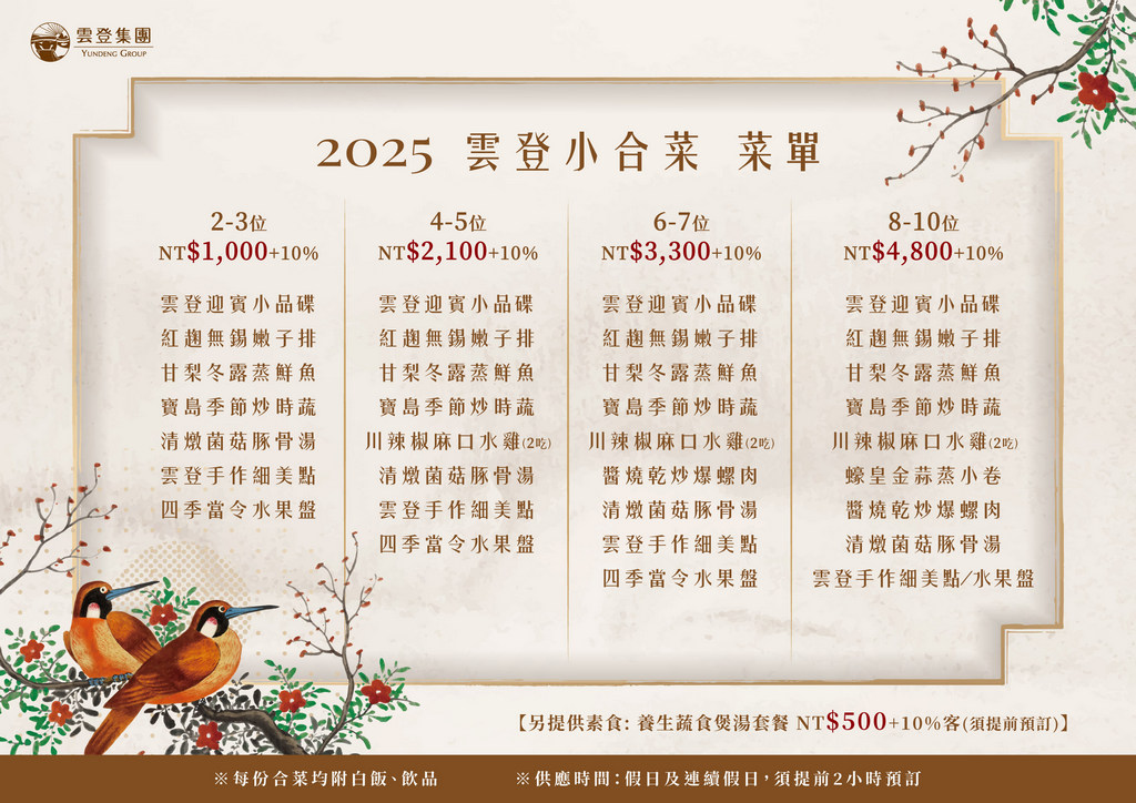 晚餐時間為17:30-20:30,提供精緻合菜,可依人數做選擇(餐點以現場提供為準),餐廳週六才有營業。