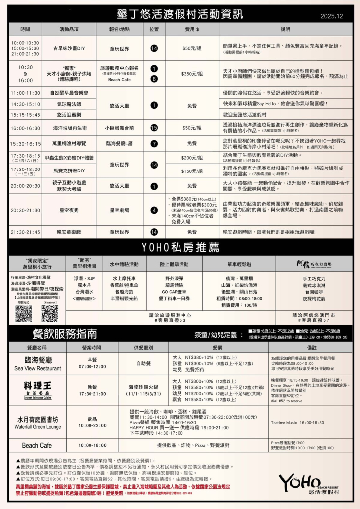 悠活渡假村2025年活動資訊,可詳下圖介紹。
