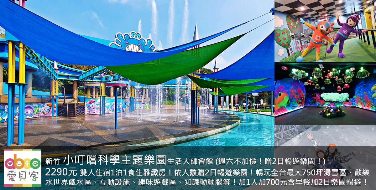 週六不加價,先搶先贏!贈小叮噹科學主題樂園2日暢遊!愛貝客這次推出位於新竹的小叮噹科學主題樂園的住宿優惠方案,只要2290元享2大1泊1食入住小叮噹科學主題樂園生活大師會館雅緻房,第3人起需加700元含早餐跟樂園暢遊!入住園區暢玩全台最大750坪滑雪區、戲水區、互動設施、趣味遊戲區、戶外美景拍照區、知識動動腦等多項設施!另有全新營地車入住體驗可點此!