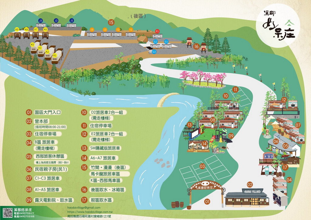 開進車進溪部好呆庄後,可以先卸下行李,園區會由服務人員指引去停車。