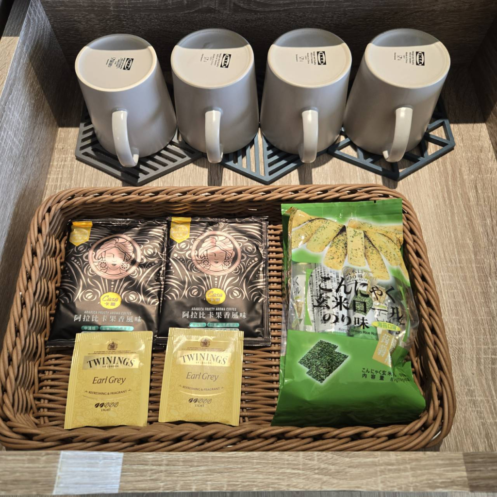 另外也會放一些茶包、咖啡包、小點心等(數量及款式以現場提供為準)。