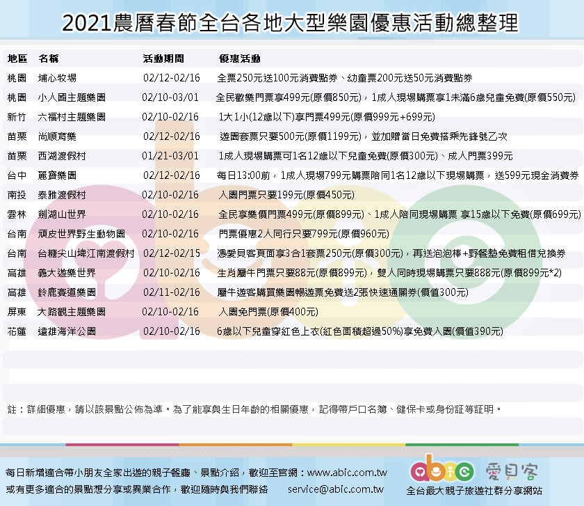 農曆春節要去哪裡呢?02/10-02/16全台各地的大地主題樂園都有優惠活動哦,快來看看!
