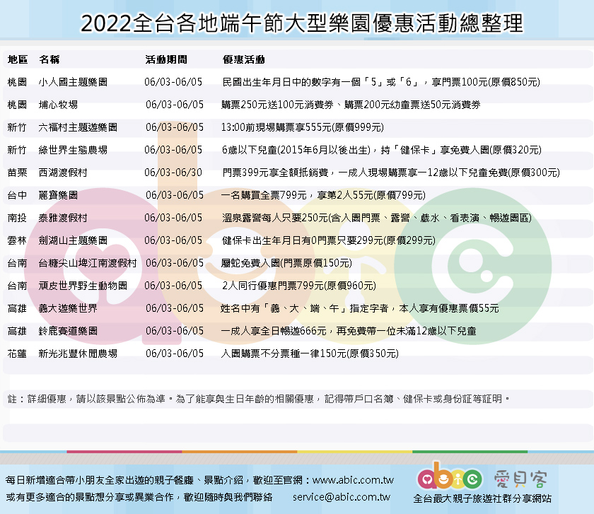 端午節3天連假要去哪裡呢?06/03-06/05全台各地的大型主題樂園都有優惠活動,快來看看!