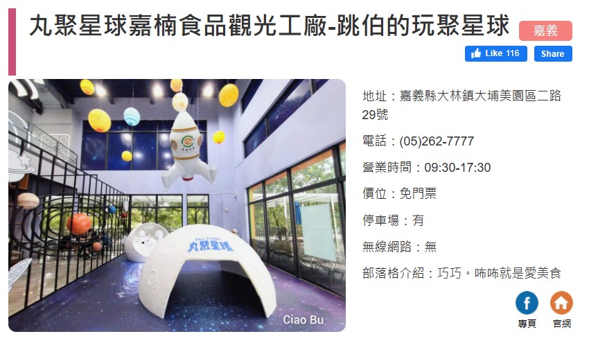 特色:裡面以宇宙太空為主軸,一顆顆的星球就像頁丸一樣;在這裡可以認識頁丸相關知識,有互動遊戲,可報名DIY手作頁丸,戶外還有戲沙坑給小朋友玩...