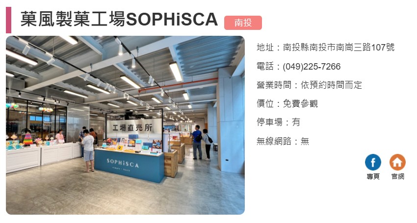 特色:以製糖為主的菓風食品,於2023年6月在南投南崗工業區成立「菓風製菓工場」,裡面免費開放參觀,有好拍的日式造景、參觀古早製糖工具、觀看現場拉糖,還可報名DIY活動,設計自己的造型甜點...