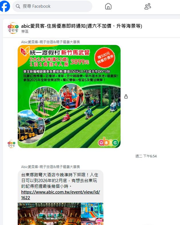 愛貝客Facebook粉絲頁快50萬會員粉絲了,還是常有會員反應收不到最新優惠的開團通知,Facebok新增專區功能,只要會員加入fb專區,新上架的飯店優惠就會第一手通知而且不會漏掉!