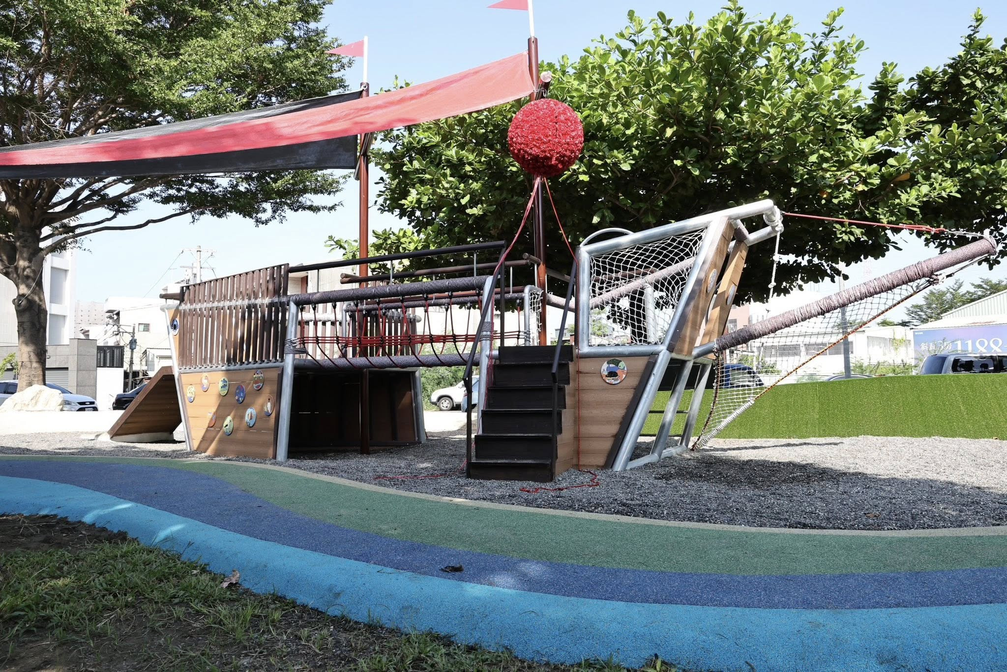 彰化市兒童公園除原有的親水戲水區外,一旁的遊戲場2018年12月進行整修升...
