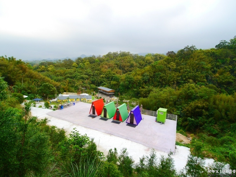 雨棚區採用堅固的鋼架打造,分有二層樓,一樓挑高五米多無壓迫感,二樓設有擋雨板,是雨天露營好去處。營本部裡有提供大型冷藏冰箱、 飲水機、醫藥箱,有大冰箱,夏天就不用帶大型冰桶來了。