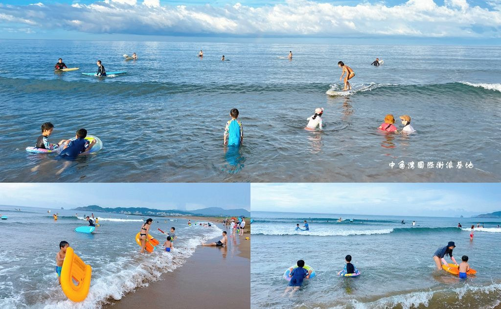 中角沙珠灣位在金山區台二線39公里處,是東北角衝浪聖地之一,這裡的沙灘屬於細沙,小石子較少,加上淺灘區的範圍不小,很適合帶小朋友來戲水。