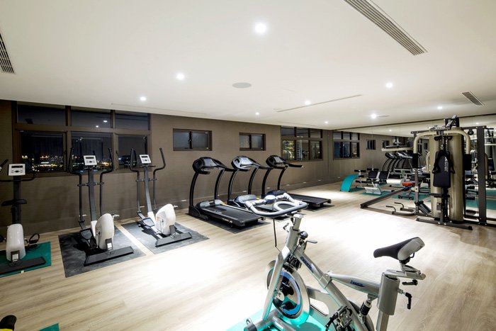 在休閒中心另一邊,則有健身房,若在健身房內跑步,透過窗戶還可以遠眺新竹市景風貌。