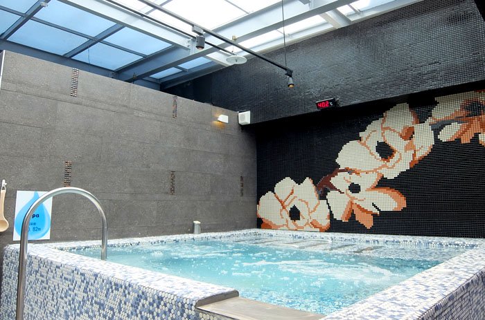 SPA區蠻特別的是天花板是採用玻璃的方式,白天來使用時,可以感受到外面的光亮,且SPA區不只有水療池,還有烤箱跟蒸氣室,可以幫身體帶來充分放鬆。