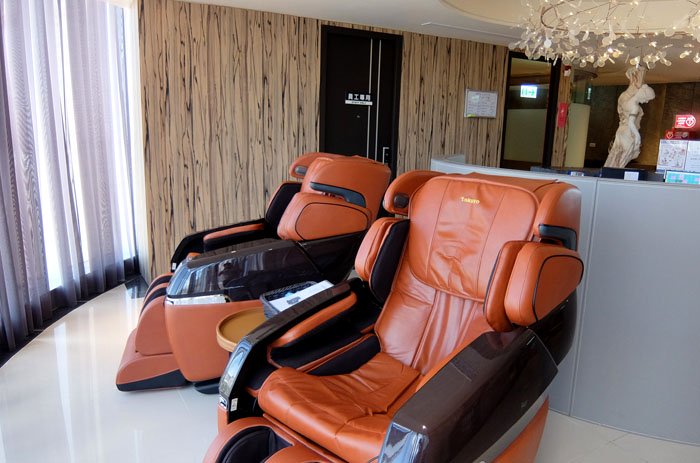 運動完後,在休閒中心的櫃台處,還準備了兩台TOKUYO旗艦級全方位零重力按摩椅,運動完或泡完SPA後,讓按摩椅舒緩全身是最讚的了。