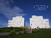 整棟民宿都以白色外牆方式來設計,再加上面向海洋,讓來到這裡的人會有像到國外地中海的錯覺。每個房間都最少15-20坪起跳,大片的落地窗,每個房間都能有360度觀景,還有一片沙坑、水池,帶小朋友來也還蠻適合。