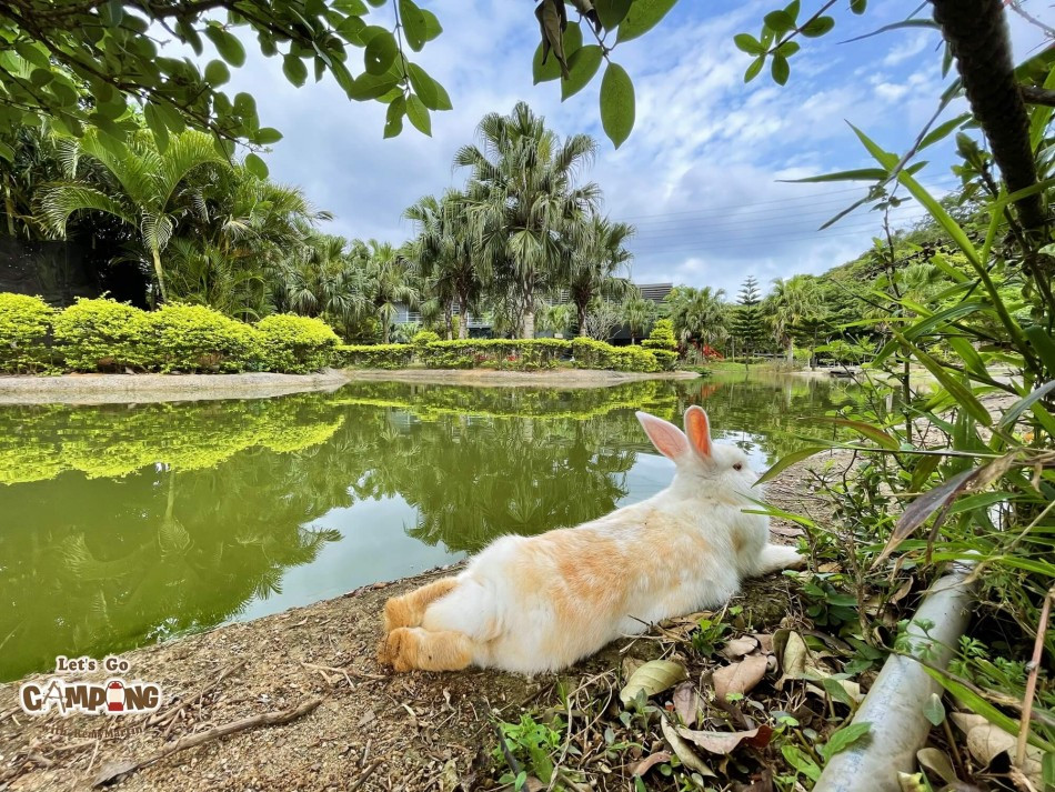 營地有雨棚、草皮、碎石營位,農場裡有個不小的人工湖泊,湖泊裡有座小島,養著可愛小兔子,戲水區是夏季必玩之處,還可以體驗摸蜆,沙坑設有遮陽棚,豐富的休閒設施,可以讓小朋友玩很久。