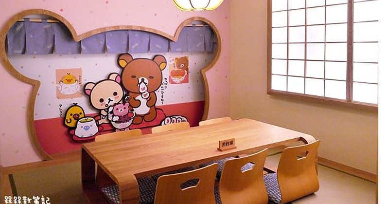 傳統日式裝潢裡結合拉拉熊元素,竹簾上有拉拉熊與三色糰子的圖案,窗花上也是拉拉熊的頭,裡面有一間和式小包廂,牆上大大的立體拉拉熊布景,萌萌的樣子讓人快門按不停。