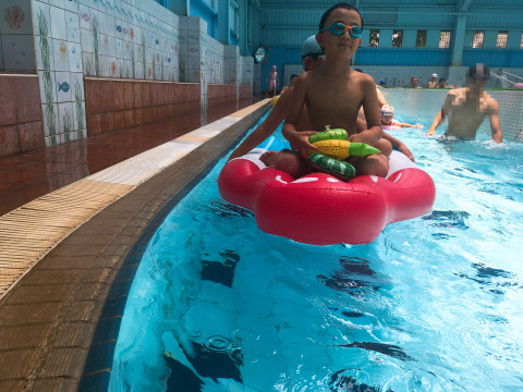 威尼斯SPA游泳池位在桃園市區,全室內泳池有溜滑梯、氣墊闖關設施、漂漂河、SPA池、烤箱、蒸氣室等,還有香蕉船可免費借來玩。