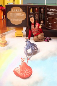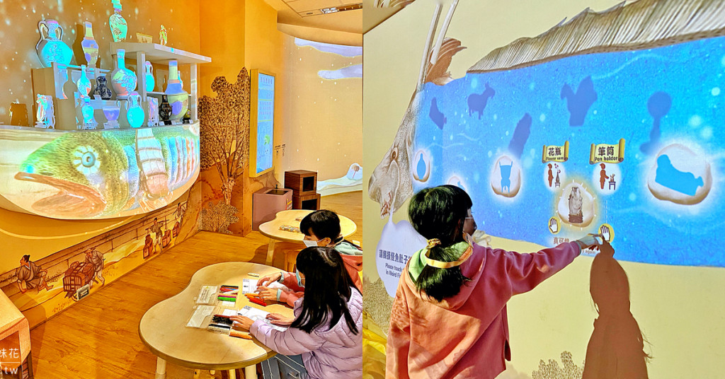 第二個是「發現古珍寶」,以海怪圖記裡的魚為主題,觸摸怪魚肚子裡的氣泡,認識故宮裡的古文物。
