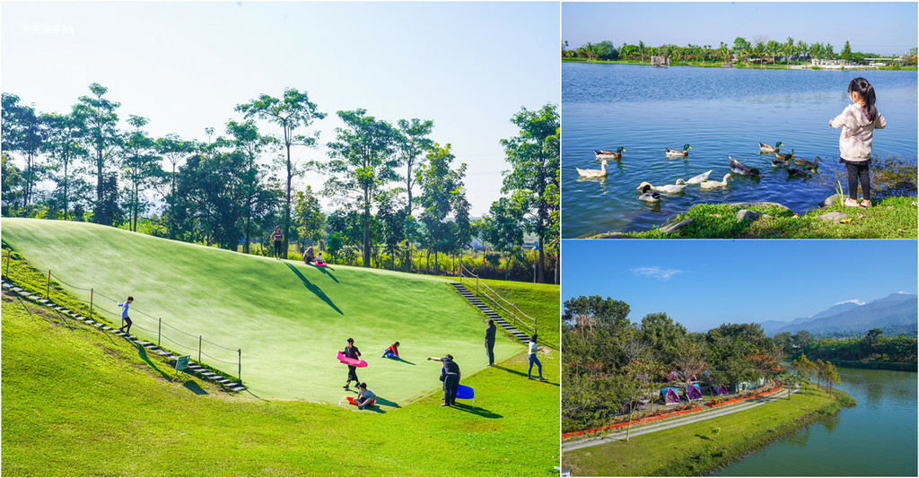 獅頭庄-水農場位在屏東縣新埤鄉,開幕於2016年11月,農場佔地約9公頃,有大片草皮、景觀湖泊,門票只要100元,可以玩滑草、腳踏船、小船戲水池、大型戲沙池、釣魚、烤肉等休憩活動,很適合親子家庭前往。