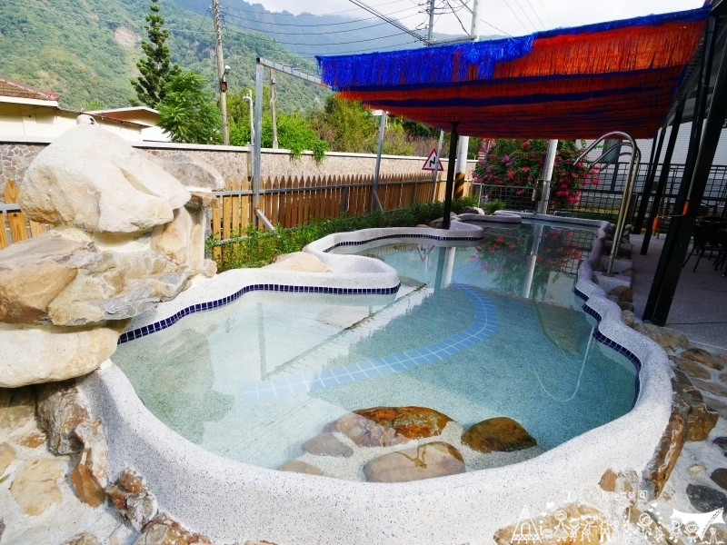 戲水池空間不小,一旁有SPA水柱,爸媽可以好好SPA按摩放鬆一下,水池上方設有遮陽簾不怕曬。戲水池旁是細白沙坑,另一側則有溜滑梯與蹺蹺板等設施,營主貼心擺放休憩桌椅讓陪伴的爸媽坐著休息。