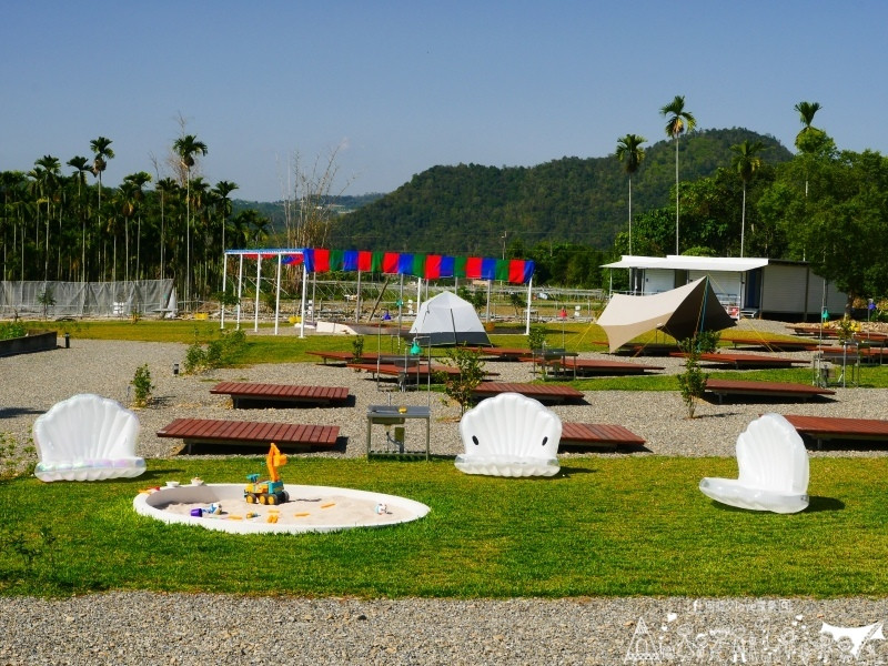 營區提供冰箱與飲水機,設有親子浴室,空間夠大也有提供小澡盆。親子遊憩區空間不小,平坦的草皮讓人心情愉悅,遊憩區擺放幾個造型氣墊沙發讓家長休息,這裡有一個大的戲水池與二座沙坑,沙坑上提供不少挖沙玩具,戲水池到了冬天則變為釣魚池,池子上有許多色彩鮮艷的玩具小魚,小朋友可以拿釣桿慢慢釣。