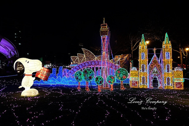 桃園主燈區在三民運動公園,裡面以史努比為主角,跟著史努比一起環遊世界,一覽各地名勝,其他還有桃園在地風情,繽紛亮麗的燈飾造景與大片LED燈海耀眼迷人。