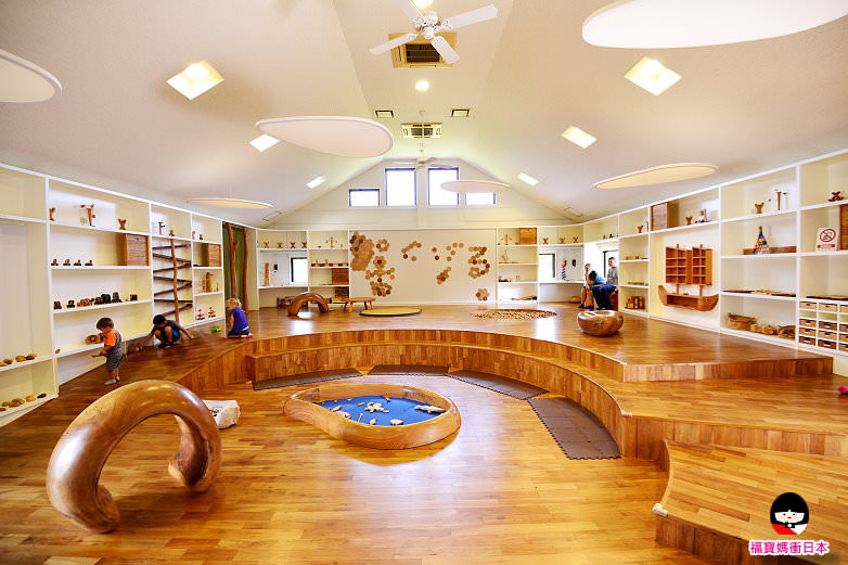 館內以大量原木進行裝飾,也有販售一些木製小玩具。遊戲區是一個開放平台,大大的木地板有階梯、斜坡與一座小木球池,所有玩具都擺在櫃子上,可任意拿取隨地坐著把玩,整個氣氛非常輕鬆自在。