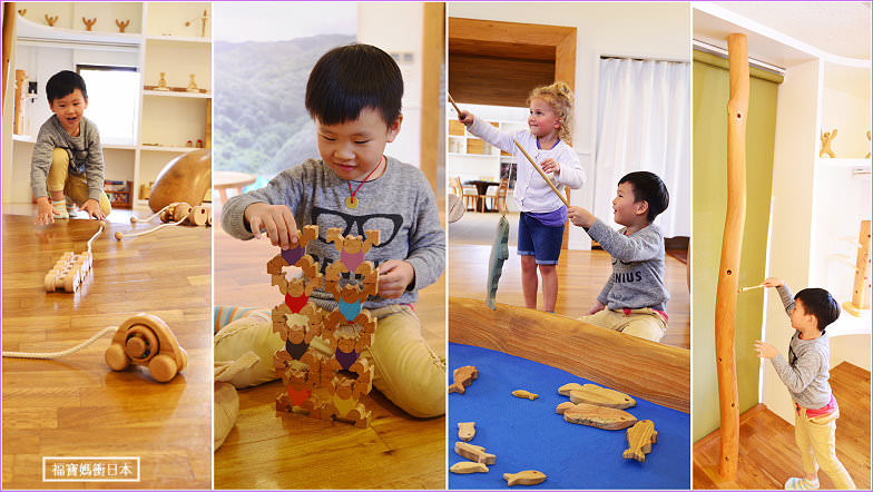 木製玩具很多樣,有釣魚、玩具小車車、積木與多種益智玩具,斜坡設計的木地板還可以讓小朋友遛小車車,所有玩具都玩個1-2次,可以玩上一陣子。