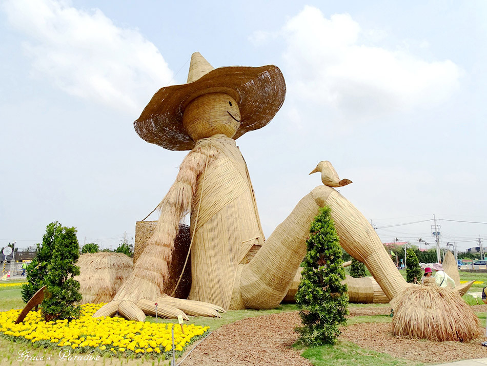 場內有不少必拍大型裝置藝術,像是巨型稻草人、巨型錦鯉、巨型珍珠奶茶、大漁船與太陽能生命樹等分布在各個展區內等你來拍照,還有好玩好拍的綠迷宮,迷宮佔地約1500坪,首創植生迷宮牆,高約2公尺,大片花卉牆非常漂亮,迷宮內也有裝置藝術讓大家邊走邊拍。