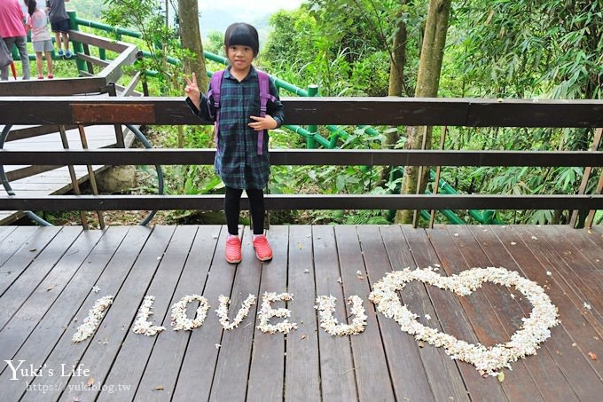 公園內為階梯步道,不適合帶推車前往,不過裡面範圍不會太大,不用擔心走太久。帶小朋友來賞花外,還有一座立體繩網攀爬架可以玩,另一邊則有三角吊橋,僅由一條粗繩索與繩網架構的吊橋看起來很刺激,走起來很安全,可以帶小朋友挑戰看看。