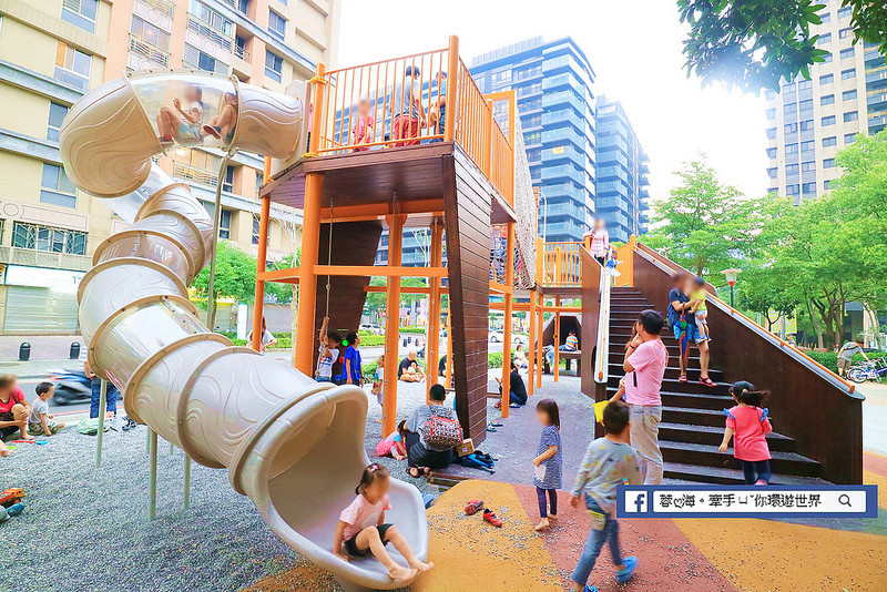 這裡有為愛玩沙小朋友設計的大型細白沙坑,爸媽記得帶上挖沙工具前來,一旁設有沖洗區給大家使用。鞦韆的話有一般、鳥巢與雙人三種,其他像是極限發輪、跑酷棧橋、旋轉杯等都超好玩。