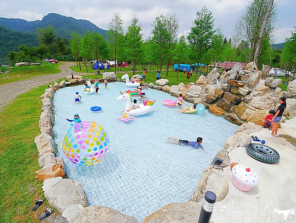 露這裡帳篷就搭在落羽松旁,很有度假悠閒風情,小朋友也不得閒,不僅有足夠的草地活動空間,營地設有大型戲水池與戲沙區,鄰近的清澈小溪更是探險抓魚蝦的好去處。