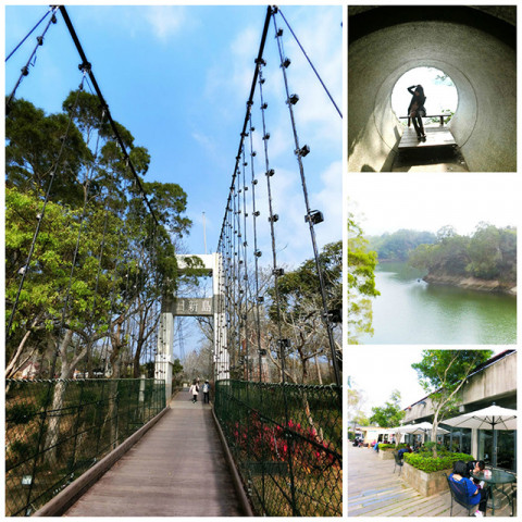 這裡有大片的草地,可以帶些球類玩具來玩,還有一個漂亮的生態池,池邊有小鴨,島上也養了不少色彩繽紛的鳥兒,且走在草地上不時有孔雀、小兔子、公雞、梅花鹿等動物出現,也是蠻特別的經驗。