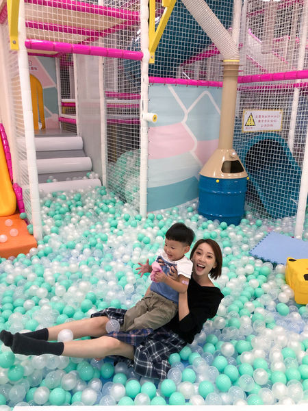 可以耗體力的溜滑梯球池在內側,裡面有各式闖關設施,溜滑梯有有幼兒、旋轉與瀑布三種滑道。