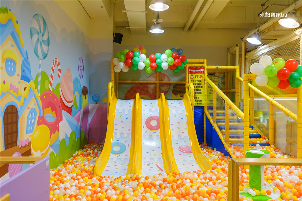 館內裝潢繽紛童趣,有遊戲愛樂園首座糖果瀑布溜滑梯、超市扮家家酒、氣球屋、變裝、轉轉椰子樹與造型滑步車等遊樂設施,假日也會有姐姐帶活動哦。