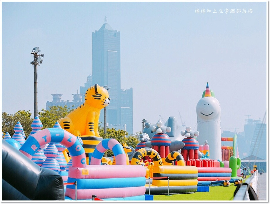 第二代動物氣墊造型更可愛,19公尺高的七彩獨角獸溜滑梯、金鋼家族、瓢蟲氣球屋、大熊泡泡球池、大象家族與鱷魚家族等15座氣墊,不只小朋友,連大人也忍不住想加入一起玩樂、跳躍。