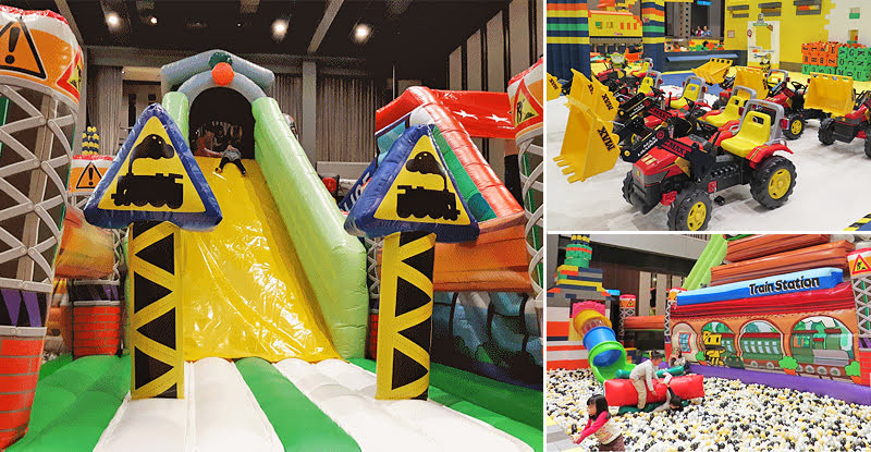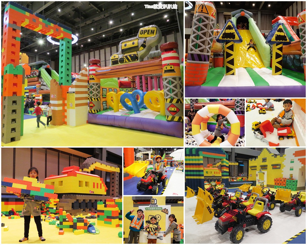 五顏六色的巨型積木打造出熱鬧好玩的室內樂園,小朋友穿上工程背心、載上工程帽開玩啦。裡面共分為5大遊戲區,有溜滑梯球池、大型氣墊闖關溜滑梯、大型積木與無毒EPP沙坑,沙坑上還有很多車車挖沙玩具可以玩。