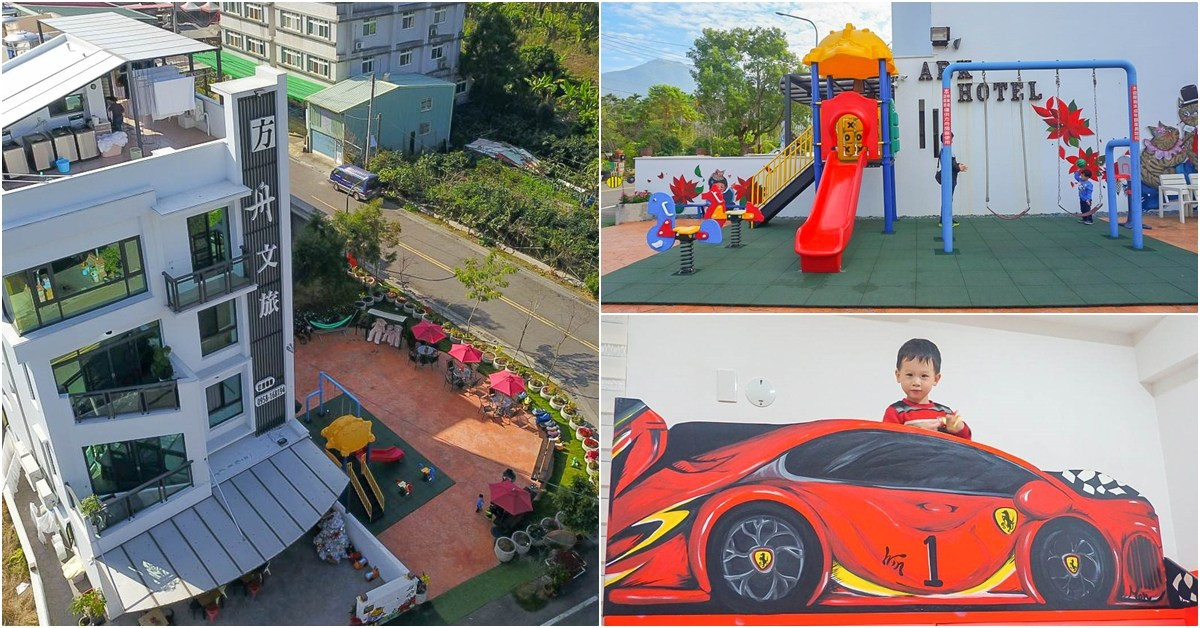 親子房分別為法拉利咘咘車、龍貓公車與趴趴熊溜滑梯三個主題,除了主題溜滑梯,房內也彩繪著相關的圖案,打造活潑氣氛。在一樓公共空間也有親子室內閱讀區,擺上舒適的沙發座椅,提供多樣繪本與跳跳馬、積木等玩具。