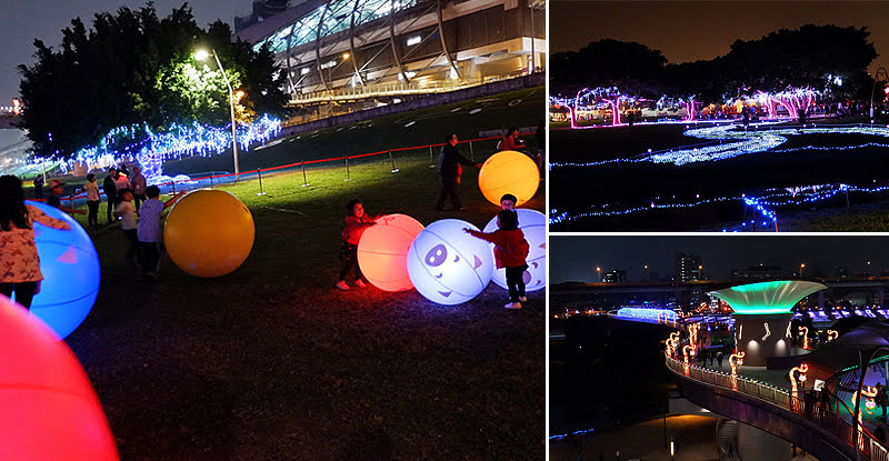 公園佔地寬廣,就算人多走起路來不會有太擁擠的感覺,燈會有大型燈具與搭配地景燈飾,還有適合親子共玩的「碰碰豬」主題區,山丘草皮上擺滿數顆大小豬豬球,推動它時還會發光,超受小朋友喜愛。