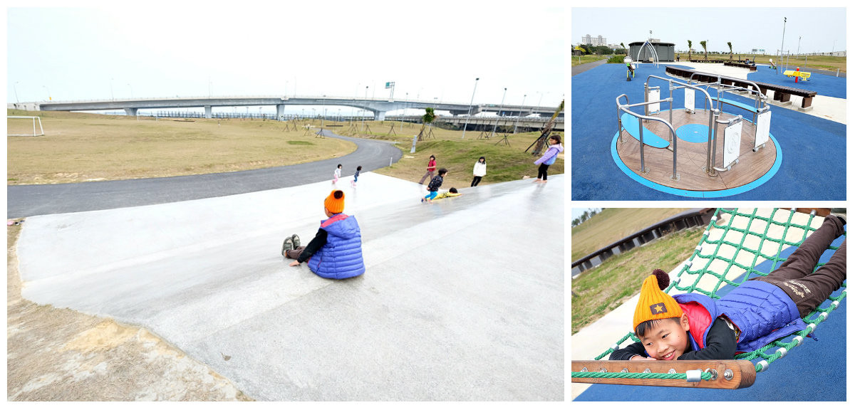 兒童遊戲場有多人旋轉盤、蹺蹺板、鳥巢鞦韆、一般鞦韆、單槓、繩索搖床等,還有最愛小朋友歡迎的大平面磨石滑梯,就像碗公滑梯一樣,可多人同時共玩,寬滑的平面讓現場歡笑聲不斷。