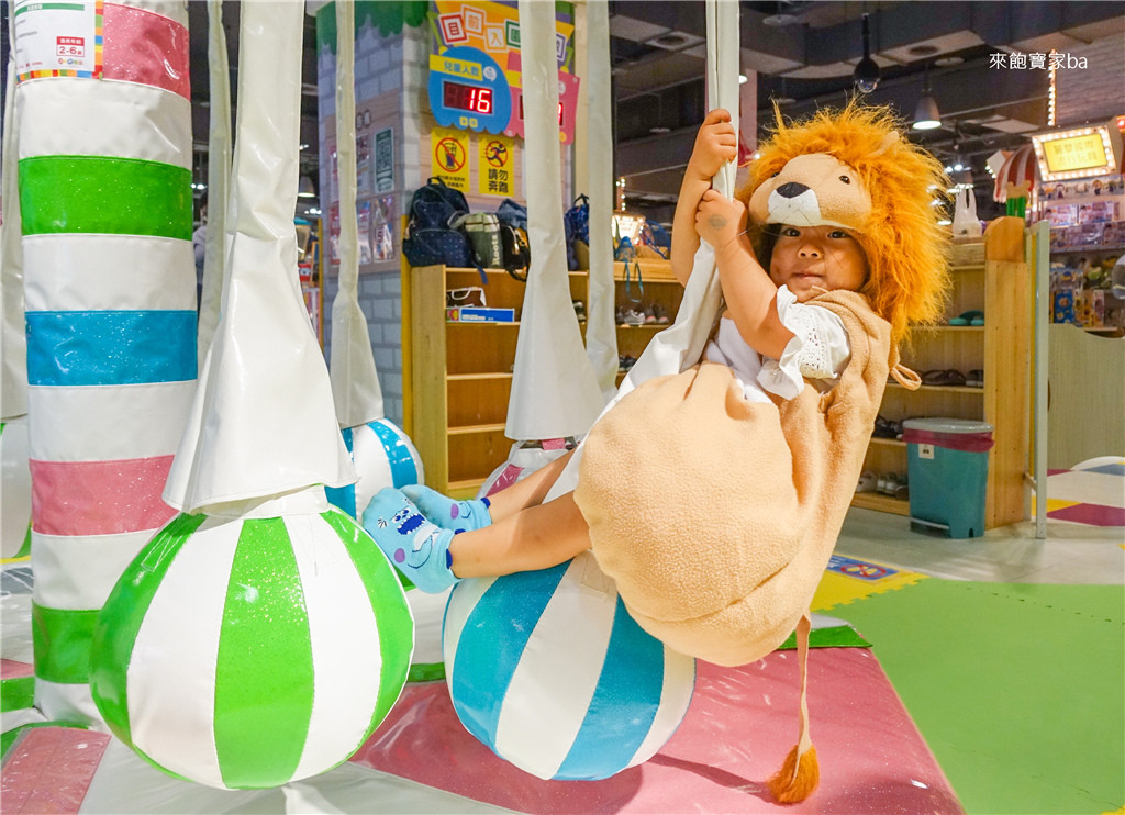 館內適合128公分以下小朋友入場,有大型溜滑梯球池,球池上還有海盜船、大玩偶、旋轉棒棒糖、摩天輪與平衡木,光球池就可以玩上一陣子。