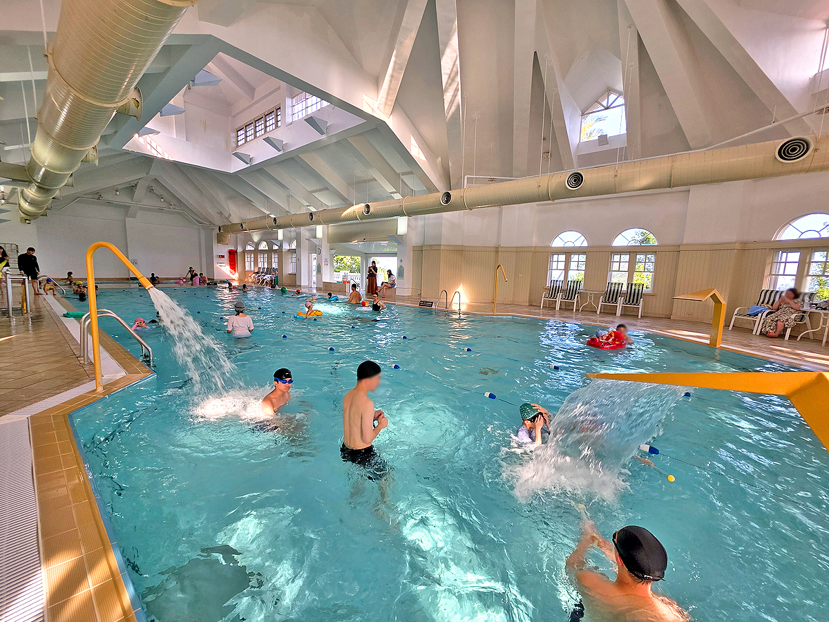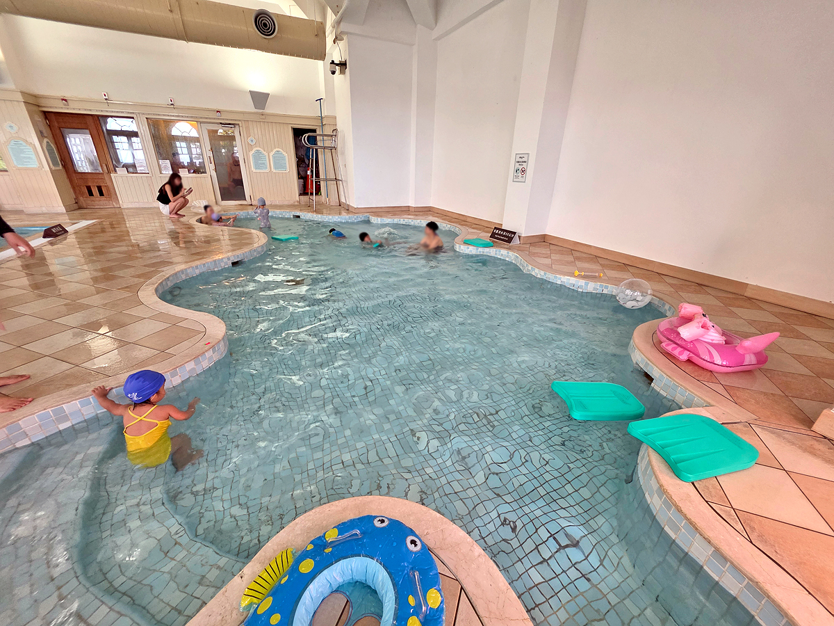 室內還有標準的溫水游泳池與兒童池,大一點的小朋友可以來練習游泳,小小孩也可以玩。