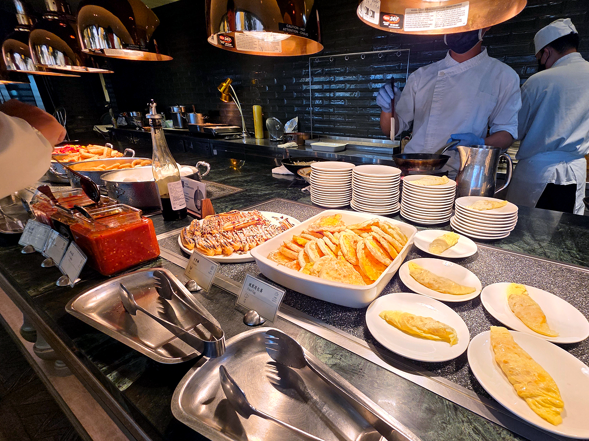 飯店的早餐也很豐富,供應各種現煮現煎料理。