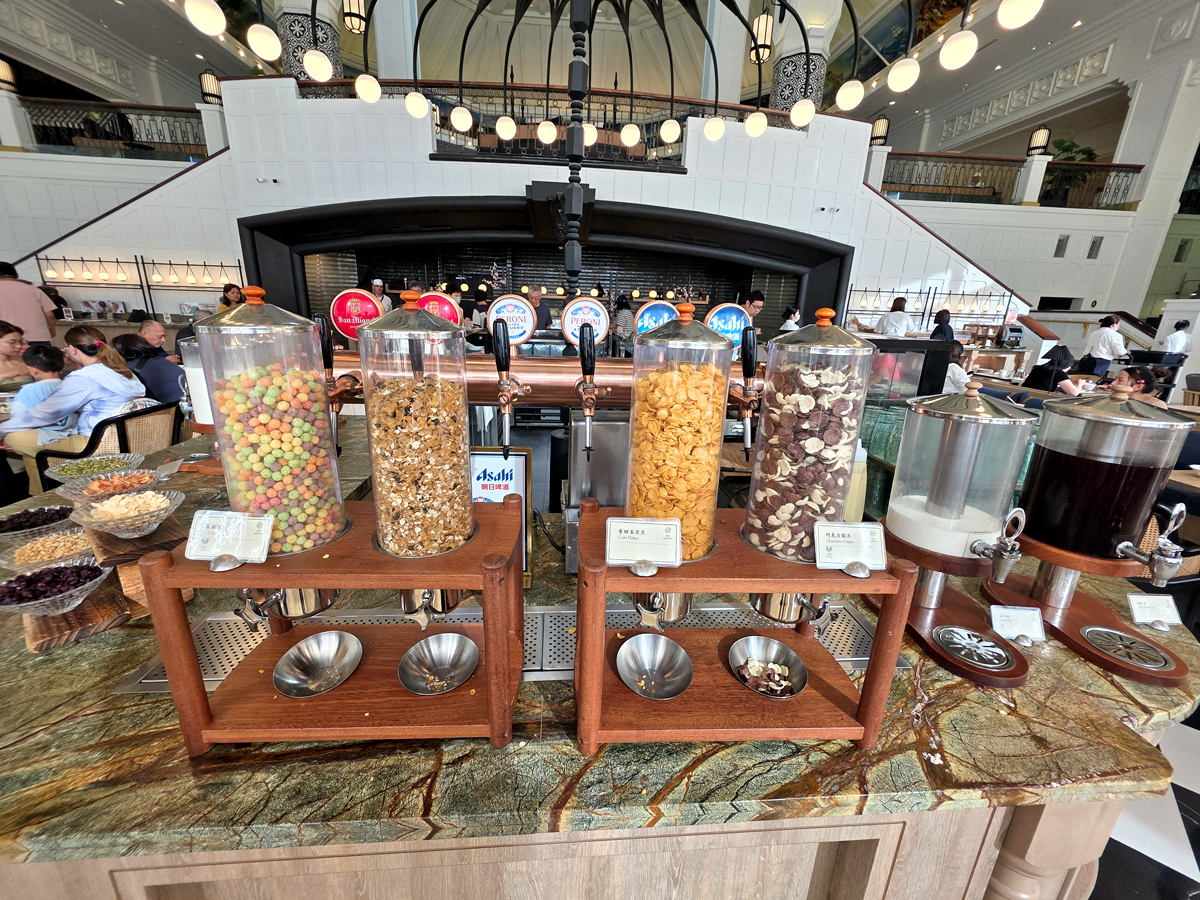 第2天早餐在「英倫西餐廳」用餐,整修後的餐廳空間達670坪,高挑明亮的空間,加上設計燈飾,帶點低調奢華風格。