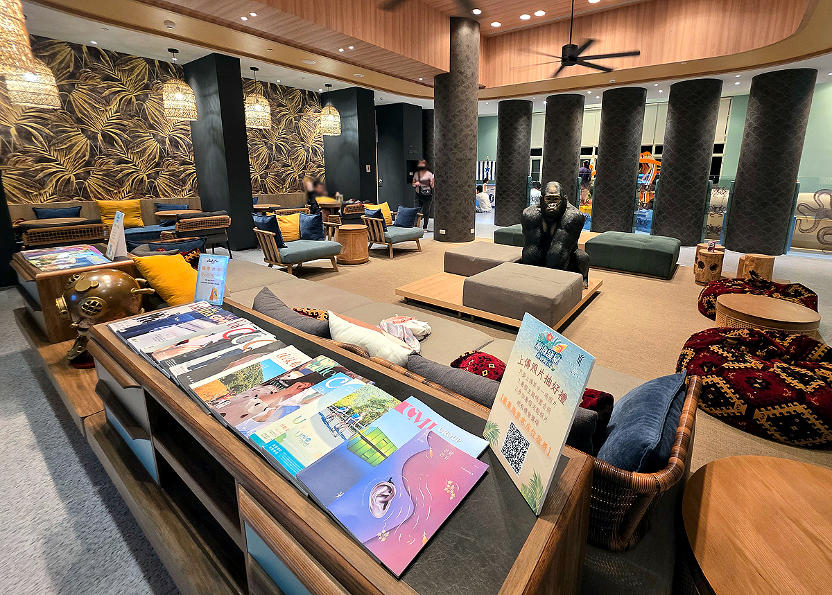 接待大廳中間10公尺高的熱氣球引領大家前往美好的旅程,採用當代設計風格,搭配典雅的圖紋裝飾與傢俱,質感大大升級。