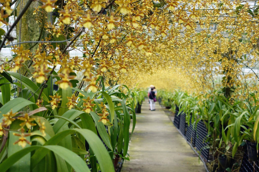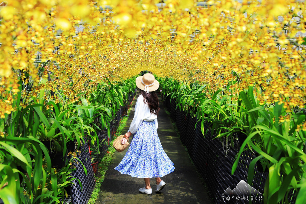 位在宜蘭員山的金雙甡花卉農場,有一座長達100公尺、漂亮好拍的文心蘭金黃花隧道與浪漫的時鐘藤花牆,入園參觀只要50元,可兌換30元水果枝仔冰1支,歡迎大家入內參觀拍照。