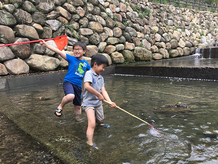 溪裡也能發現魚蝦蹤影,小朋友邊玩水邊撈魚,忙個不停。