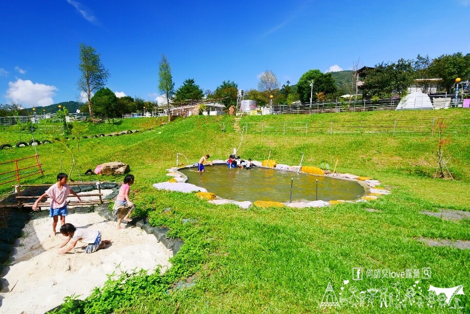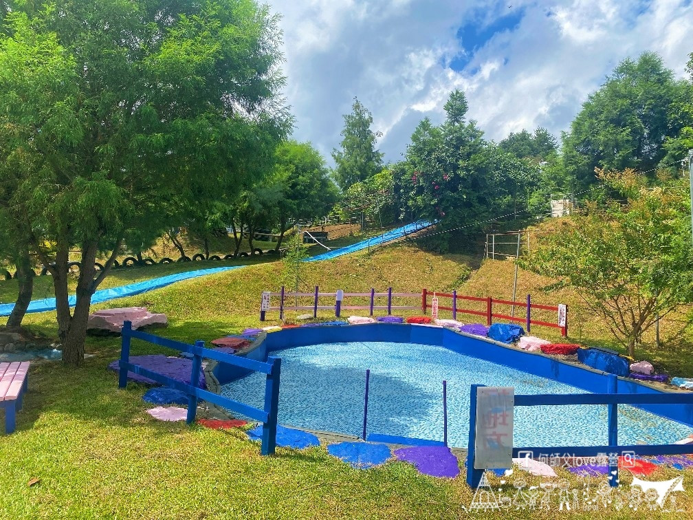 遊樂設施有大黑板塗鴉、山泉SPA戲水池、盪鞦韆、蹺蹺板、戲沙池與35公尺長滑草坡。天然山泉水戲水池夏天玩水超消暑,滑草坡還會提供滑草板給小朋友玩。營地可以看鸚鵡、陸龜、兔子等小動物,每年4-5月時,在營區裡也能看到飛舞的螢火蟲哦。