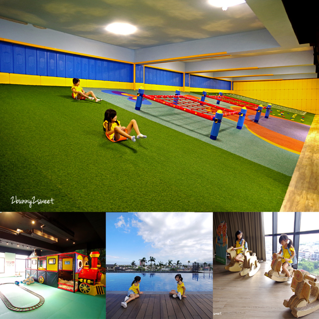 兒童遊戲區位在10樓,整層都是小朋友歡樂場所,有溜滑梯球池、大積木、軌道車、大布偶、廚房組、滑草場、繩網攀爬、攀岩牆等,也有付費DIY活動。戶外泳池在6樓,分為50公分與110公分2池,無邊際泳池視野很好,爸媽泡水看風景,小朋友開心戲水。
