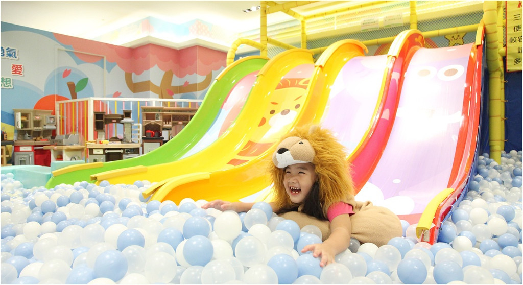 館內以萌獸為主題,好玩的溜滑梯上彩繪可愛的萌獸圖案,小朋友還可以換上動物裝在裡面玩。遊樂設施有溜滑梯球池、旋轉棒棒糖、摩天輪、氣球屋、自動旋轉椅、超市採買、廚房扮家家酒組...等。