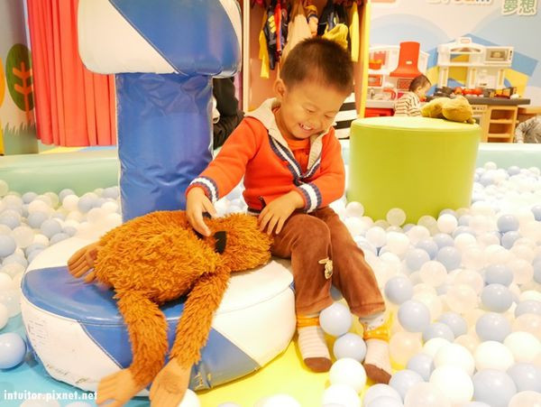 館內以萌獸為主題,好玩的溜滑梯上彩繪可愛的萌獸圖案,小朋友還可以換上動物裝在裡面玩。